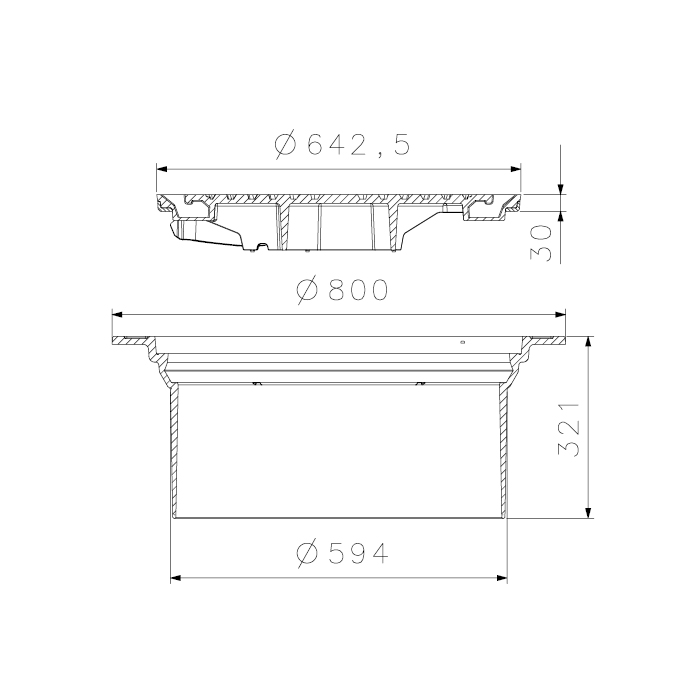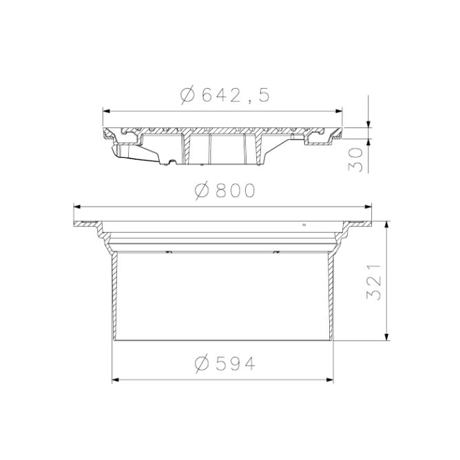 För brunn med dagöppning 600, UNVL 600-650 D/UF 600 HT, täta spetthål, självlåsande, pågjuten packning, hög ram, utan slits